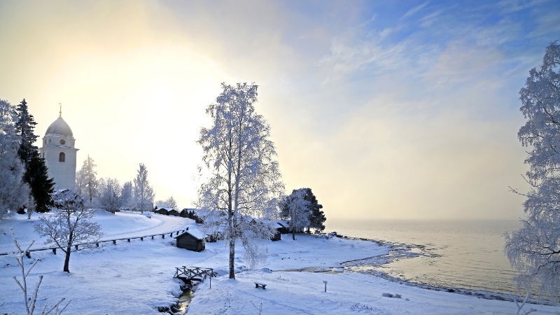 Juldagen. Kaffe med dopp finns uppdukat i foajén för dem som önskar följa med till julottan i Rättviks Kyrka. Av tradition startar Julottan redan klockan fyra på morgonen! Frukosten dukas fram och sen följer de som vill med på en bussutflykt i det vinterglittrande landskapet.